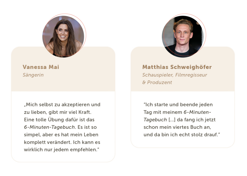 Bekannte Stimmen zum 6-Minuten-Tagebuch