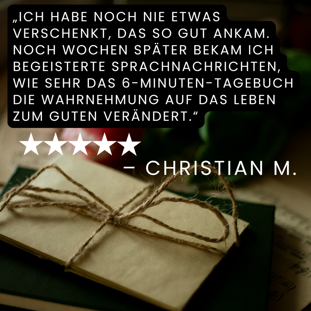 Das 6-Minuten-Tagebuch ist für alle, die mehr Achtsamkeit, Dankbarkeit und Freude erleben möchten – ganz gleich, wo sie gerade stehen. Ein wunderschönes Geschenk in Premium-Qualität.