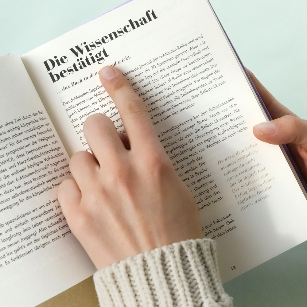 Dein Wohbefinden ist uns wichtig! Deshalb sind wir auch außerhalb der 6-Minuten-Journals für dich da. Ganzheitiche Inspiration gibt's im 6-Minuten-Podcast, im 6-Minuten-Newsletter im 6-Minuten-Blog und auf Instagram.