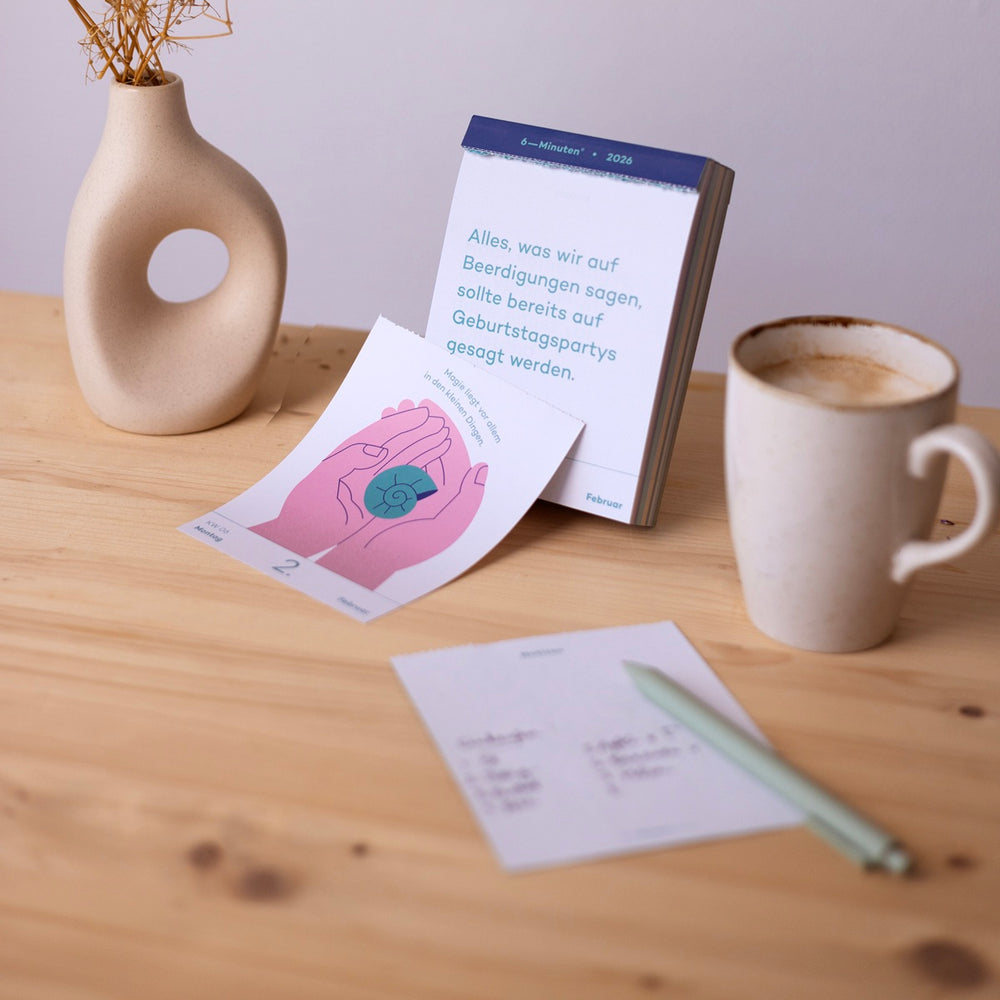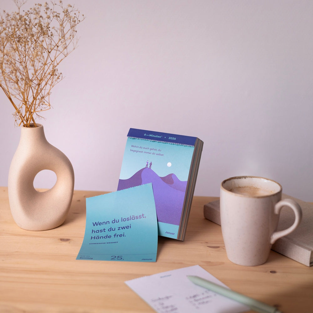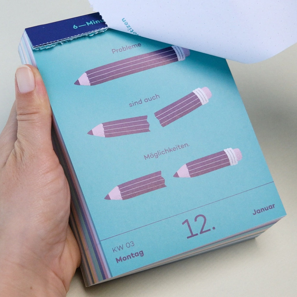 Ob zu Weihnachten, zum Start fürs neue Jahr oder einfach so: Der 6-Minuten-Abreißkalender ist mehr als nur ein Kalender. Du verschenkst jeden Tag einen kleinen Moment Ruhe, Motivation und Lebensfreude.